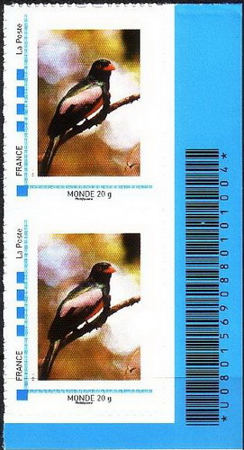 Il codice a barre è un insieme di elementi grafici ad elevato contrasto disposti in modo tale da poter essere "letti" da uno scanner a laser o a LED che, una volta effettuata la decodifica, possa restituire le informazioni in esso contenute. Tra i codici a barre più usati l'EAN e l'UPC (unidimensionali) e il QR (bidimensionale). L'uso più rilevante è quello di gestione del magazzino ed appunto per tale scopo viene usato da diversi Paesi emittenti per i fogli di francobolli.