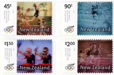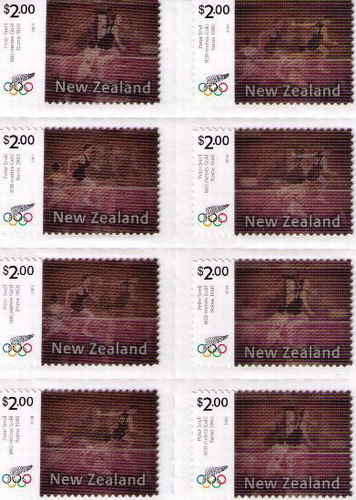 Flip is the simplest of all animation effects; it involves an image change from one to the next. A lenticular flip allows up to three separate images to be combined and viewed independently when viewed at different angles while moving the lenticular lens. Lenticular 3D is accomplished by generating enough image information to allow the viewer to see the 3D effect. Typically this requires 12 images of the subject matter, recorded in a strictly defined manner. Full Motion Video uses multiple frames of an action showing movement from its beginning to end. It is very much like watching a movie clip. This effect is best optimized when the background remains constant throughout the sequence. Lenticular Zoom Effect make an image appear to move closer or farther away. 02-08-2004 - Nuova Zelanda: Giochi Olimpici (full motion video) Varietà con scritte invertite 10-02-2006 - Paesi Bassi: pattinaggio (full motion video) 19-09-2006 - Irlanda: Ryder Cup (full motion video) 02-12-2006 - Emirati Arabi Uniti: sceicco Al Maktoum (flip)