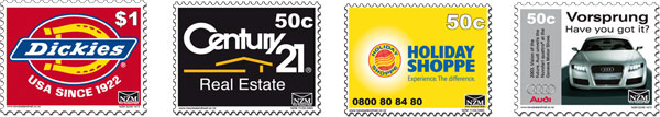 1936: Sudafrica / South Africa Il 2 novembre 1936 si aprì in Sud Africa la 'Johannesburg International Philatelic Exhibition'. Per contribuire al pagamento delle spese della mostra, furono emessi due foglietti con sovrastampa JIPEX 1936. Oltre la pubblicità per il telefono ed il telegrafo, c'erano altri annunci, ad esempio per il tabacco. 1938: Algeria Nel 1938 fu emesso un libretto pubblicitario dalle poste francesi per la colonia dell'Algeria. 1942-1943: Sudafrica / South Africa Durante la Seconda Guerra Mondiale fu promossa una pubblicità in due lingue (inglese e afrikaans), con un messaggio che invitava ad acquistare titoli di debito dell'Unione. 1943-1944: Africa del Sud-Ovest / Sout-West Africa Analogamente al Sudafrica anche in questo stato furono emessi francobolli con un messaggio sulla cimosa che invitava ad acquistare titoli di debito dell'Unione. 1953: Gran Bretagna / Great Britain Fu emesso un libretto con messaggio pubblicitario sull'ultima di copertina. 1954: Nuova Zelanda / New Zealand Nel 1954 apparvero dei libretti pubblicitari che utilizzavano francobolli da 1p arancio o 3p vermiglio della regina Elisabetta II. Tra gli sponsor la benzina BP. 1956: Algeria Altro libretto pubblicitario emesso per l'Algeria. 1957: Repubblica Democratica Tedesca (DDR) / East Germany Nel 1957 la Germania Orientale emise alcuni libretti che in copertina pubblicizzavano ad esempio la Lutfhansa, il gioco del Lotto, una crema di bellezza. 1964 - fine anni '70 Dal 1964 la Sierra Leone usò inserire annunci pubblicitari sulla pellicola removibile che si trovava sul retro dei suoi francobolli autoadesivi dalle forme insolite. (1965: Assad Yazbeck - Freetown; 1966: Harry Winston - New York) Anche Tonga inserì pubblicità sulla pellicola removibile dei francobolli autoadesivi 1968: Gran Bretagna / Great Britain La Gran Bretagna emise dei francobolli in libretti con pubblicità assicurativa, con messaggi sulla salute e sui segreti della grafia. 1971-73: Gran Bretagna / Great Britain Furono emessi dei libretti contenenti, oltre ai francobolli, uno spazio riportante un messaggio pubblicitario. 1974: Gran Bretagna / Great Britain Libretto pubblicitario (fu emesso in vari colori con francobolli di diverso valore). 1981-86: Italia / Italy Blocchi dedicati ai produttori italiani di aerei e di automobili 1989: Stati Uniti / United States A fianco a questi francobolli dedicati ai dinosauri, viene riportata la pubblicità di una ditta che a richiesta poteva stampare i poster degli animali raffigurati. 1990: Canada Il Canada rappresenta un esempio più recente di pubblicità collegata ad un francobollo. Sulla cimosa del blocco da quattro valori del 1990 dedicato alle creatute leggendarie si trova il marchio della McDonald's, che contribuì come sponsor delle Poste canadesi. 1992: Australia Nel 1992 l'Australia rilasciava un libretto con valori adesivi con specie animali minacciate. Un coupon dava la possibilità di vincere un viaggio per due alle Olimpiadi del 1992 a Barcellona con un volo Qantas. 1993: Australia Nel 1993 l'Australia rilasciava un libretto con francobolli adesivi raffiguranti treni famosi. Sulla copertina del libretto, i clienti erano invitati a partecipare alla vincita di un viaggio sul famoso treno 'Ghan'. 1994: Tonga Nel 1994 Tonga emise dei francobolli adesivi che sul retro riportavano la pubblicità dell'azienda produttrice. 1995: Gran Bretagna / Great Britain Libretto con dettagli pubblicitari nell'interno della copertina: le aziende sponsor offrivano omaggi o sconti. 1996: Gran Bretagna / Great Britain Ai clienti, con la spesa di due sterline (50 francobolli) si dava un 'gratta e vinci' che dava la possibilità di vincere un viaggio a Disney World in Florida, il tutto sponsorizzato dalla Royal Mail. 1998: Gran Bretagna / Great Britain Nel 1998 la Royal Mail Promozioni Disney con l'acquisto di un libretto da dieci francobolli di prima classe offriva la possibilità di vincere un viaggio a Disney World's Animal Kingdom, con il 'gratta e vinci' sul retro. Nello stesso anno furono emessi libretti con i quali si poteva vincere una videocamera JVC e addirittura una autovettura Peugeot 106. 15-11-1999: Pakistan Pubblicità dedicata ad un marchio di benzina. 2002: Belgio / Belgium Nel 2002 il Belgio emise un foglietto con pubblicità di due riviste dedicate ai cani. 2004: Singapore Singapore, in occasione del World Stamp Championship 2004, ha emesso 20 foglietti con pubblicità riguardanti le grandi aziende multinazionali. 2005: San Marino Grandi vini italiani. 2006: Singapore Nazionali vincitrici dei campionati del mondo di calcio. 04-2006 - Austria: personalizzati: una pubblicità ingannevole prometteva una colla al gusto dei vari dolciumi 08-05-2008: Croazia / Croatia Autovetture Wolksvagen su bandella 2009: Guinea Bissau Francobolli sulle nuove frontiere tecnologiche. Oggi / Today:La nuova frontiera della pubblicità sui francobolli è rappresentata oggi dai francobolli personalizzati come quelli sotto raffigurati, che pubblicizzano marchi, film o società sportive. La Francia ha lanciato un francobollo pubblicitario che a sua volta invita ad usare i francobolli personalizzati (IDtimbre) per lanciare delle campagne pubblicitarie, sponsorizzare un prodotto, invitare ad una manifestazione o presentare delle novità, anche in versione "prestige": 31-03-2011: Israele / Israel Israele pubblicizza le sue bellezze paesaggistiche su francobolli e cimosa. 2009-2012: Irlanda / Ireland Pubblicità occulta?? 13-12-2014 - Filippine / Philippines altra pubblicità dedicata ad una compagnia petrolifera. 07-06-2016: Australia Libretto con francobolli dedicati a vecchie etichette pubblicitarie.